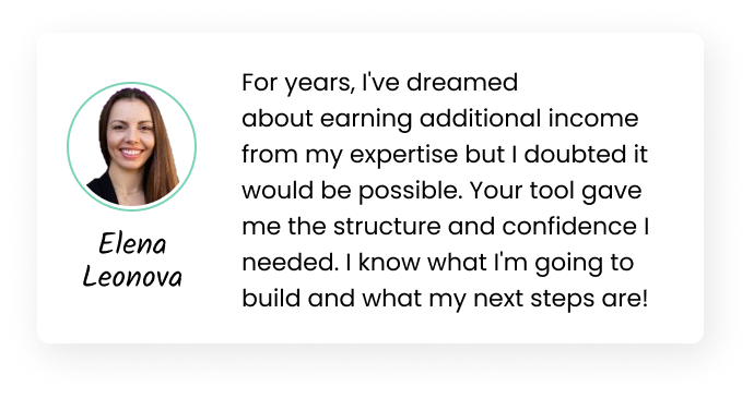 If only you could earn additional income without working a second job or longer days.Good news: You 100% can.Maybe you've seen others productize their expertise. They package and sell their knowledge inside online courses, ebooks, and templates. Products they build once and sell forever.But when it comes to creating your own offers, you don't know where to begin.What if you choose the wrong niche? What if you waste your time?