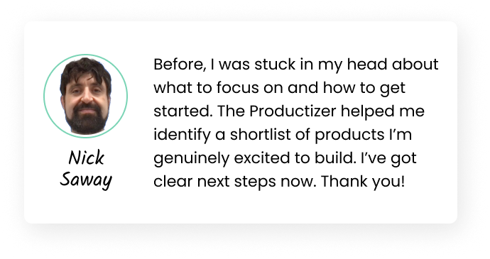 For as long as I can remember, I've dreamt of financial freedom...To be in a place where I live life on my terms. Where I get to do work that inspires me and positively impacts others.But that dream has always felt unreachable. I've always been too busy working to figure it out. Too busy selling all of my time for money.Then a few years ago, that constant drive to work and earn caught up with me. 25 years into my career, I was overrun with burnout.I needed to make a change where I'd win back my time and freedom. I needed a new way to start earning without sacrificing more time away from my family.I began packaging my knowledge into digital courses & templates I could build once and sell forever - what's referred to as productizing.That decision changed my life - financially, professionally, and personally. Now I want to help others, like you, achieve the same.I created the Productizer Co-Pilot to help you discover skills & knowledge you have that others want. Topics you can package and monetize.When you do, you set yourself up to earn additional income streams. You start making an extra $5k, $10k, and more per month.What would you be able to do with that kind of extra cash each month?